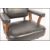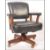 A 1950's retro vintage office desk chair having a thick stuffed black leather seat , backrest and armrests raised on a quadruped four point splayed base with castors. Measures 90cm x 61cm x 68cm.
