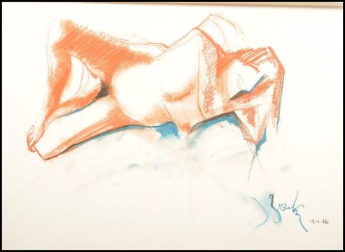 Dick Boulton ( Artist & Sculptor ) - ' Candle Afterimage ' ( 1984 ) - A 20th Century abstract pastle on artist stock, painting / drawing life study of a nude female lying down, signed to the corner and being framed and glazed. Measures 46cm x 62cm.