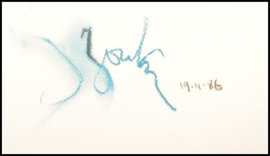 ARTISTS RE-SALE RIGHT. Buyers of the re-sold art of living artists will be charged the royalty where applicable. Currently this is 4% on any item sold at 1000 Euros or over, diminishing about 50,000 Euros. VAT is not applicable. Further details can be obtained from our office.