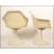 After Marcel Burke - Arkana - A mid Century retro vintage pair of fibreglass armchairs supported on a metal tulip style base together with a similar style tulip table. Measures 62cm x 107cm diameter.