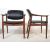 Edvard Kindt Larsen and Tove Kindt Larsen - France and Son - A pair of 1960's retro vintage armchairs , each armchair raised on teak show wood frames with shaped elbow rests being upholstered in black leather to the seat and the backrest. Measures 79cm x 64cm x 57cm.