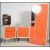 An original 1950's retro vintage white painted and burnt orange Formica wood patterned bedroom suite. The suite comprising of a straight three drawer dressing chest with a mirror back raised on ebonised angled legs and brass feet, a straight three chest of drawers raised on ebonised angled legs and brass feet together with a single wardrobe with mirror raised on a plinth base all having brass and faux leather handles. Measures 174cm x 75cm x 48cm.