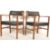Alfred Cox - A set of 1970's retro vintage teak wood dining chairs, two of which being carvers having stunning carved arms all having large padded faux leather seat and backrest retaining applied label to bottom of each with Military crows foot , date , model no. and more. Measures 72cm x 58cm x 53cm.