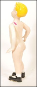 An early to mid 20th Century retro vintage point of sale shop advertising display composite mannequin of a blonde boy with painted black shoes. Measures 84cm tall.