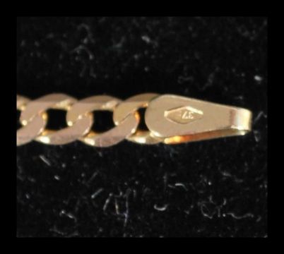 A hallmarked 9ct gold curb chain necklace having a lobster claw clasp. Measures 27 inches. Weight 8.5g.