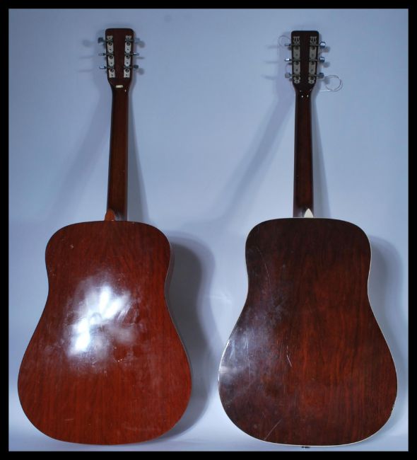 Two 20th Century acoustic six string guitars to include a Hondo II and a Hohner  both with applied paper labels to the centre.