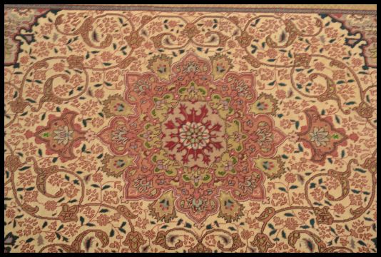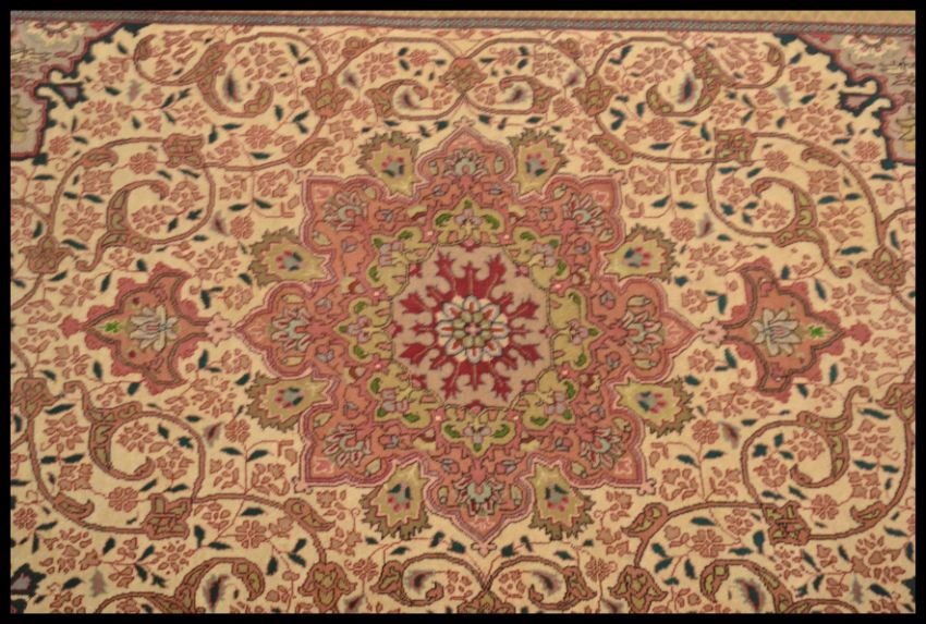 An early to mid 20th Century Persian - Islamic style floor rug, large central medallion with geometric floral borders and tassels