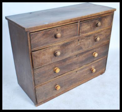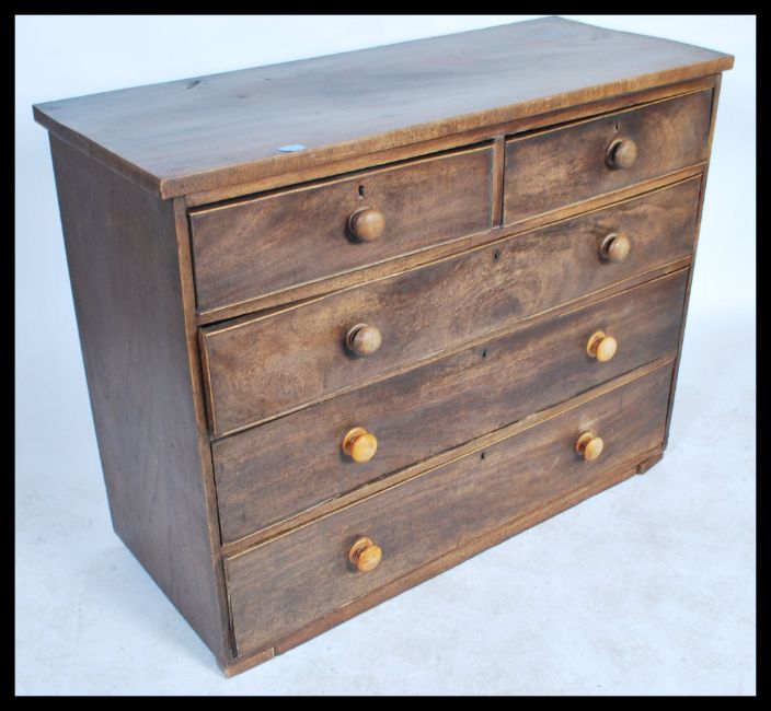 A Victorian 19th century  mahogany 2 over 3 chest of drawers having flared top with knob handles to the drawers. 97x124x50