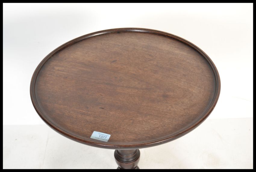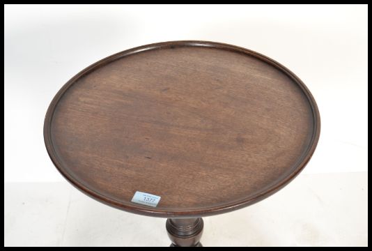 A 19th century George III mahogany tripod wine table. Raised on splayed legs with turned column having circular table top above. Measures 68 cm x 46 cm.