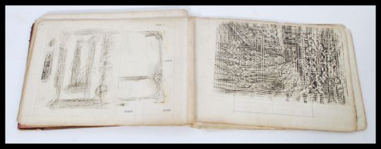 An early 20th century scrapbook containing book cover rubbings cuttings and drawings all taken from the Magdalene College Library Cambridge University.  Please see images. Measures 33 cm high and 45 cm wide.