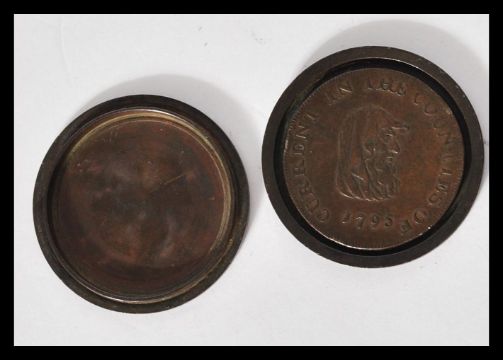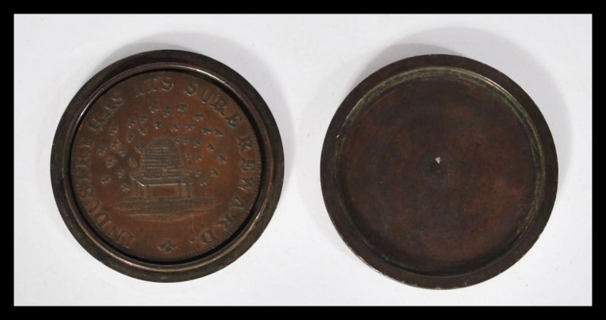 An 18th century half ½ Penny Farthing - Industry has its sure reward coin token with bees around the hive to the verso contained within a case constructed from two George  III cartwheel pennies.