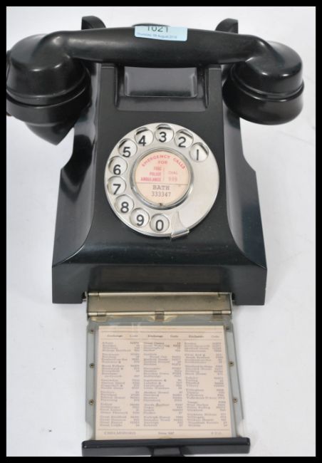 A vintage mid 20th Century bakelite phone with cheese dish and having a recent rewiring to make compatible for modern homes.