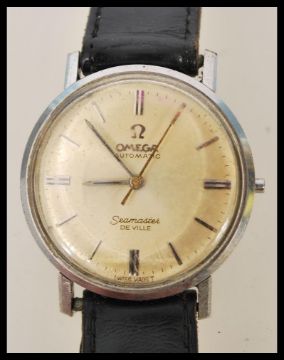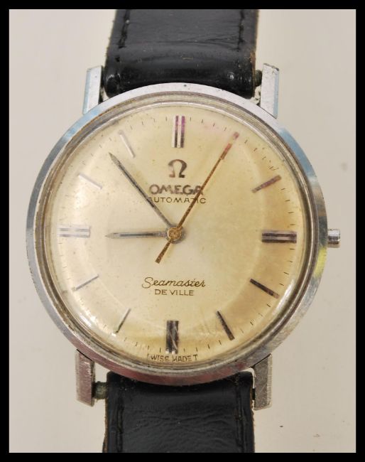 Omega gentleman's Seamaster De Ville wristwatch with champagne dial and baton hour markers, on later leather bracelet.