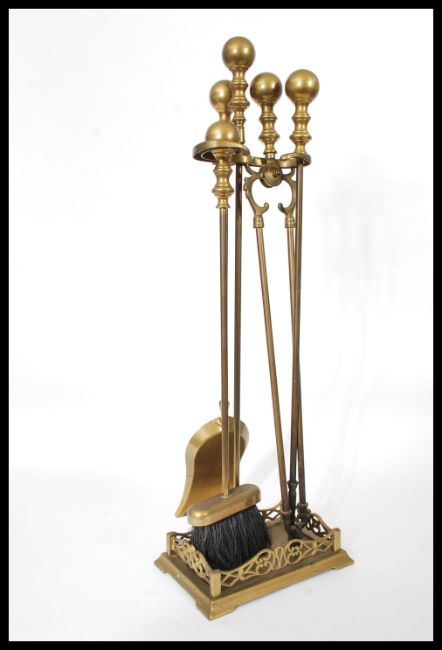A 19th century brass fireside compendium set in original cast brass stand. Please see images.