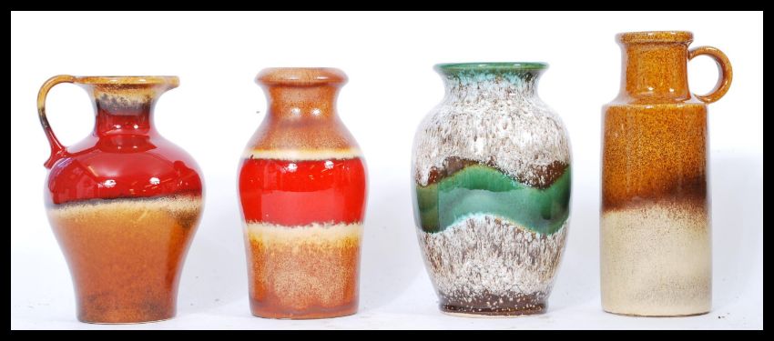 A collection of vintage retro mid 20th century West German pottery to include vases and jugs, fat lava type etc. Please see images.