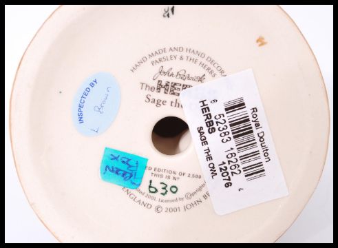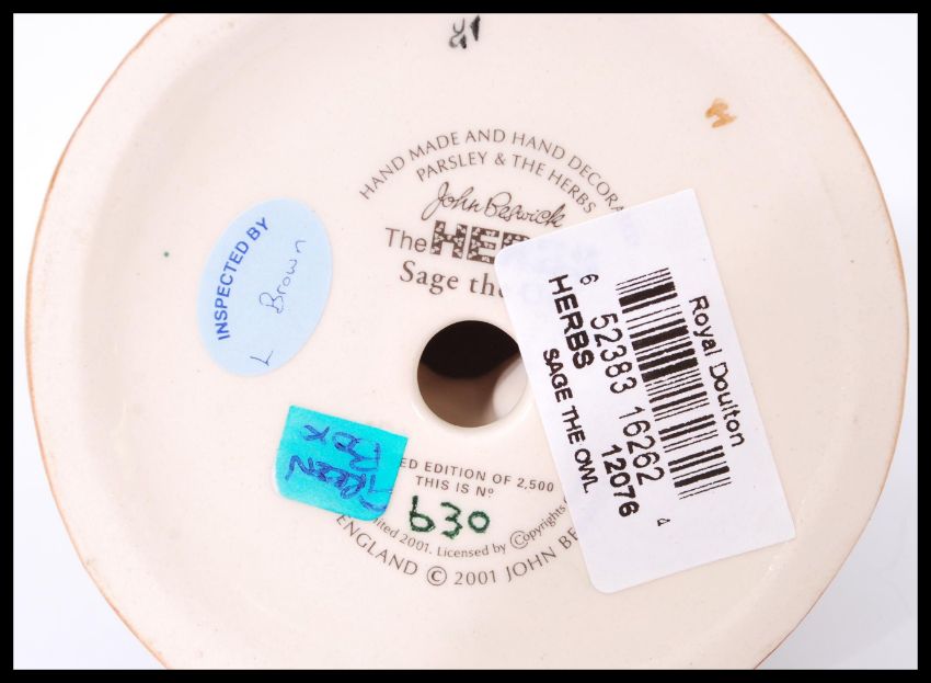 A collection of four boxed Beswick Herbs ceramic figures to include Bayleaf Gardener, Parsley The Lion, Sage The Owl and Dill The Dog. Tallest measures 15 cm.