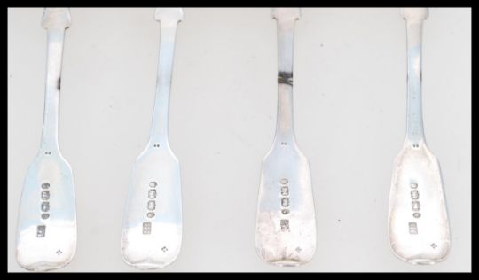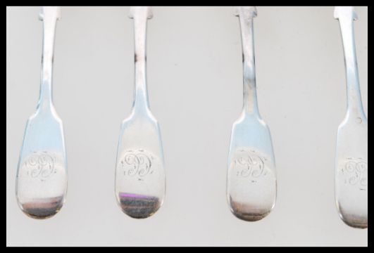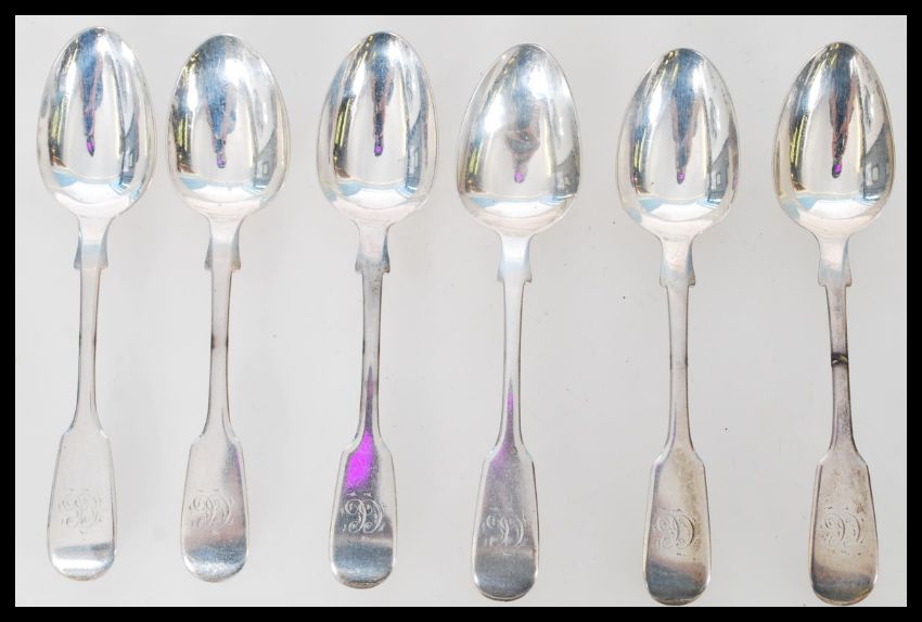 A set of six 19th Century Victorian silver hallmarked teaspoons, young Victoria head date letter A for 1837, Exeter assay mark Bristol makers mark for Robert Williams & Sons (Robert, James & Josiah Williams)