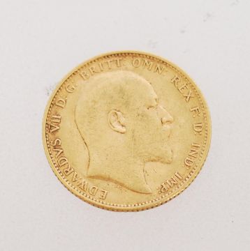 An Edward VII 1904 full sovereign coin, St George & Dragon Obv. Sovereign weighs 7.98 grams.