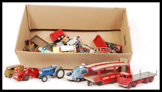 An assorted collection of diecast scale model vehicles by Dinky , Corgi and Matchbox to include Dinky Supertoys Foden , Corgi Proteus Campbell Bluebird 153 , Dinky Toys Ford Escort with Police decals and many more.