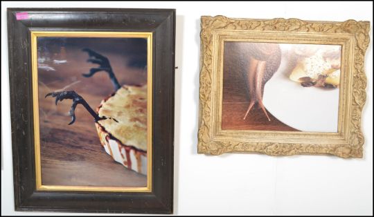 A set of 3x Photographic visual and graphic art inkjet on substrate pictures framed on wooden serving tea trays. One being of a hedgehog and the other two of squirrels.Measures 60cm x 30cm.