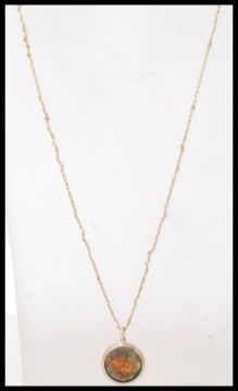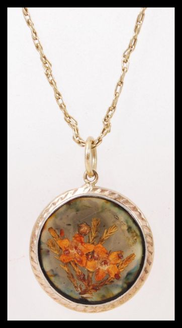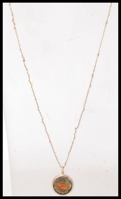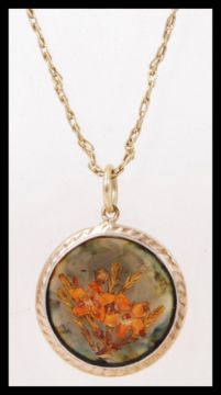 A hallmarked 9ct gold necklace having a hallmarked 9ct gold pressed flower pendant. Total weight 6 grams. Chain weighs 3.2 grams.