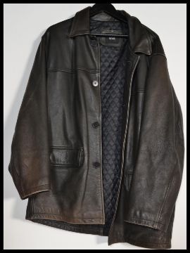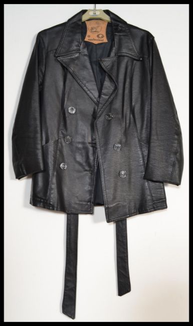 A collection of vintage clothing to include lined men's leather jacket, men's vintage sportswear jackets, Royal Caster best beaver lamb coat and des agnes ladies flared trousers. The lot also includes the rail. ( please see multiple images)