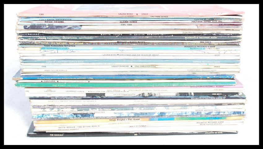 Vinyl Records - A collection of vintage vinyl long play LP records by several artists to include The Beatles, Wings, Bonzo Dog Band, Chris Jagger, Van Morrison, Pearl Janis Joplin, Paul Williams,Marvin Welch & Farrar, Crosby Stills and Nash Four Way Street ( On plum Atlantic - No sleeve ),Jimmy Webb, Loudon Wainwright III, Leon Russell, Jackson Browne, John B Sebastian, Doobie Brothers,Laura Nyro, Jamie Stone, Carly Simon, Richie Havens,Tim Kurdin, Carole King, Randy Newman, Todd Rundgren, Nilsson, Hoyt Axton, Gordon Lightfoot, Peter Skellern, James Taylor, Pete Wingfield, Mason Williams,Alan Stivell, Ry Cooder, Paul Simon, Leonard Cohen, Bruce Springsteen, Martin Carthy and many more.