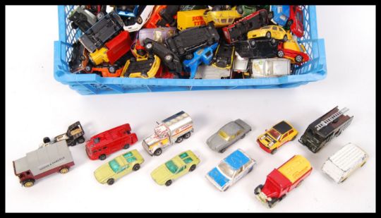A collection of approx 150x assorted loose vintage Corgi diecast model cars to include; Corgi Juniors Centurion Tank and Corgi Junior Crowler Can-Am with lots more.