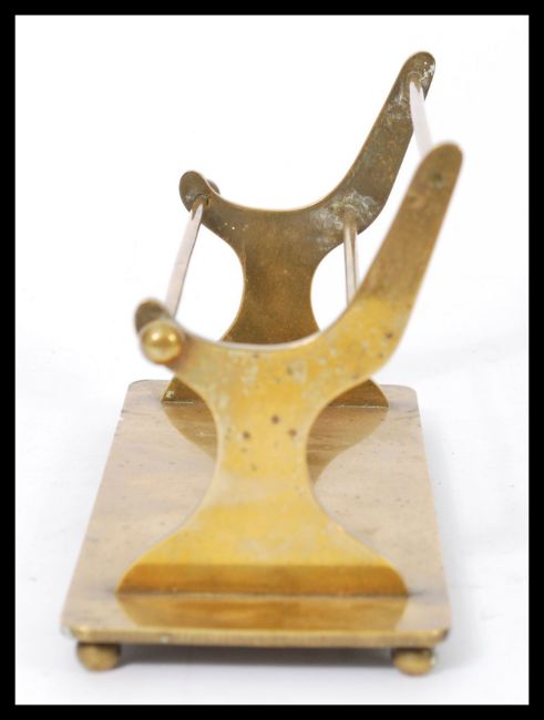 A 19th century brass telescope stand in the form of a bench raised on plinth base with ball ends. Measures 26cms wide.