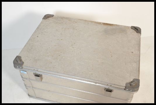 A vintage 20th Century BETRA aluminium steamer trunk, hinged top with carry handles to the side. 76cms X 40cms X 56cms