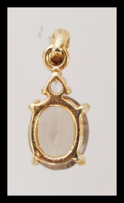 Two gold necklace pendants one 9k white gold set with diamond clusters, hallmarked Birmingham. The yellow gold pendant set with a smokey quartz with white accent stone marked 18k (tests 18ct gold. Total weight 2.5g.