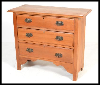 An early 20th Century Edwardian satin wood cottage chest of three graduating three drawers, swag drop handles raised on bracket supports.