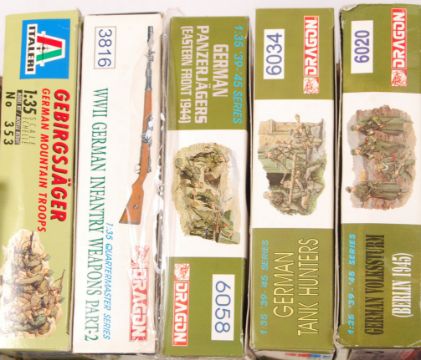 A collection of assorted military model making kits and accessories. Including 6x Dragon figure / accessory kits, a Tamiya Brick Wall kit, and various other unboxed (but unused) military figures and accessories. Largely unused. Good collection. Note: the Dragon ' Seal Support Craft ' box features various non-related contents.