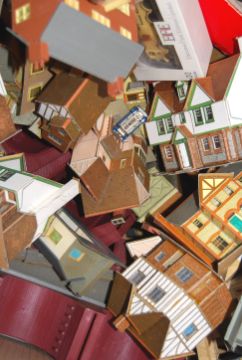 A LARGE collection of assorted vintage plastic and cardboard 00 gauge railway trainset trackside buildings and related items. Various shops, sheds, churches and houses present. All vintage, largely cardboard but some plastic present. Other accessories include boxed EFE 1:76 scale diecast models, Minix plastic cars and other items. 1x large box.  NOTE: Postage of this lot the UK will be £29.99+VAT, France & Europe from £35+VAT, USA & Canada from £65+VAT (all prices dependant upon specific location)