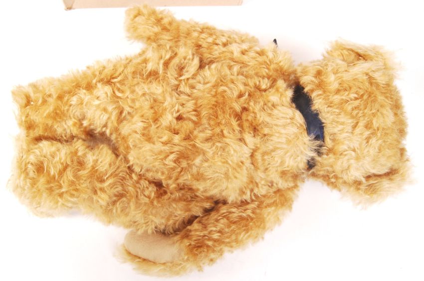 A 20th century Steiff teddy bear - ' 1902 - 2002 100 Years ' centenary. Brown mohair, with pronounced snout and humped back. Complete with certificate, bow and ear tag. Within the original box. Bear measures approx; 43cm tall.