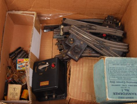 A collection of Trix Twin Railway ( TTR ) 00 Gauge model railway locomotive boxed trainset to include a BR loco with tin plate rolling stock along with a further boxed BR loco , track and controllers.