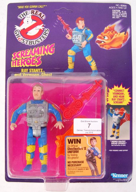 An original vintage 1980's Kenner made ' The Real Ghostbusters ' carded action figure ' Ray Stantz And Vermoan Ghost ' from the ' Screaming Heroes ' series. Contents mint, with a mint card back (unpunched).