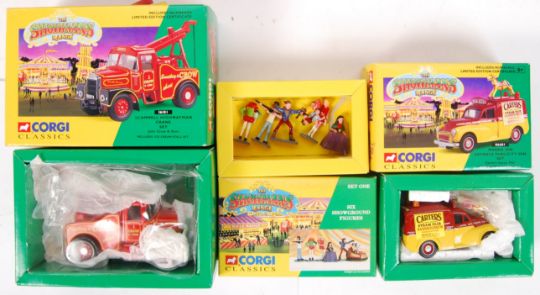 A collection of 7x original boxed Corgi diecast model ' The Showmans Range ' sets. To include; 27602, 16101, 27801, 06601, 12601 and ' Set One ' ( Six Showground Figures ). All 1:50 scale. All complete with certificates and mint in box.