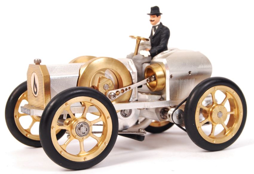 A superb rare German ' Bohm Stirling ' live steam / vacuum motor precision engineered model ' Sports Car ' AS4 . Brass and metal construction. Superbly detailed, including a miniature figure. Unboxed, but appears mint and unfired. All parts appear to be present, including the burner. Superbly crafted engine. Rare. Measures approx; 17cm long.