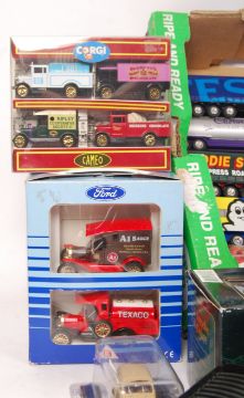 An assorted collection of diecast scale model advertising haulage , construction and other vehicles by Corgi , Lledo and more, boxed items to include; a Corgi Cameo set , Corgi D71/1 Hongwell Cararama Heavy Duty Truck.