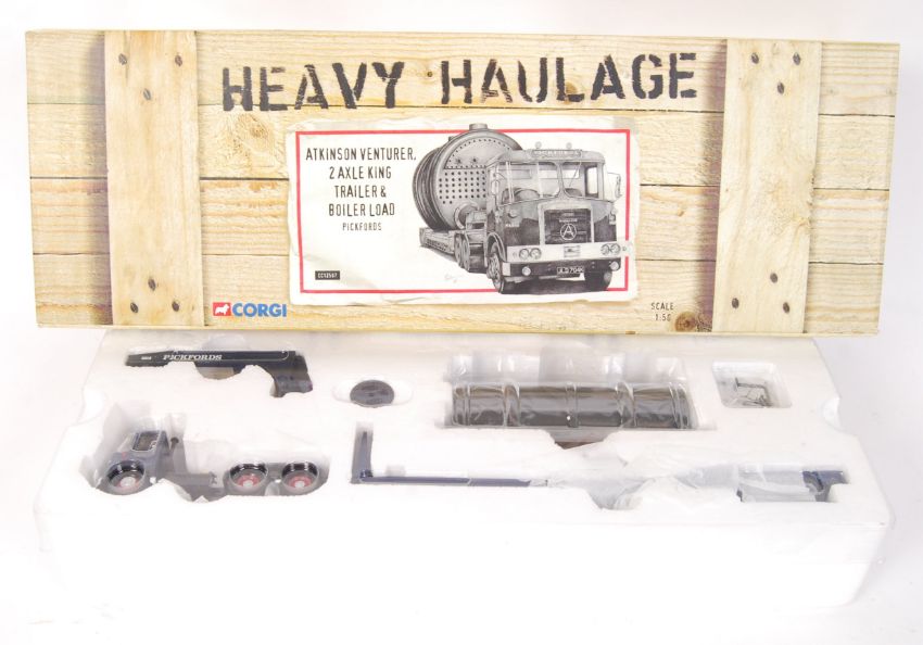 An original Corgi ' Heavy Haulage ' boxed diecast model set No. CC12507 ' Pickfords Atkinson Venturer 2 Axle King Trailer & Boiler Load '. 1:50 scale. Limited edition 1166 / 2600. Appears mint and complete, within the original box.