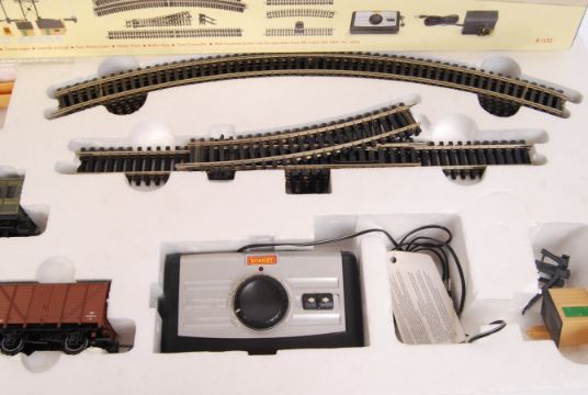 A Hornby 00 gauge railway trainset set R1132 ' The Southern Star .' Largely complete (Loco and carriages all present) but some smaller accessories may be missing. Within the original box.