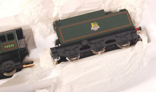 An original Hornby 00 gauge railway trainset locomotive R033 ' BR Class 7MT Loco ' Morning Star '. Appears mint, within the original box.