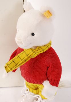 A rare limited edition Steiff made ' Rupert The Bear ' teddy bear. Complete with outfit. Steiff tag to ear, with information tags still attached to leg. Only ever displayed. With the original Steiff box. Measures approx; 32cm tall.