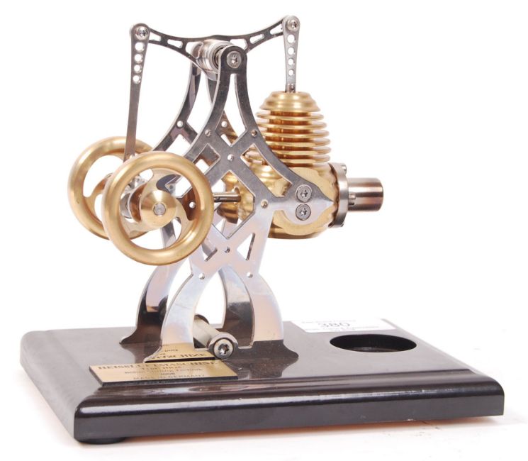 A superb rare German ' Bohm Stirling Technik ' live steam / vacuum motor precision engineered model engine ' Heissluftmaschine ' HB25 . Brass and metal construction. Superbly detailed, with plaque to base. Rare. Measures approx; 16cm tall.