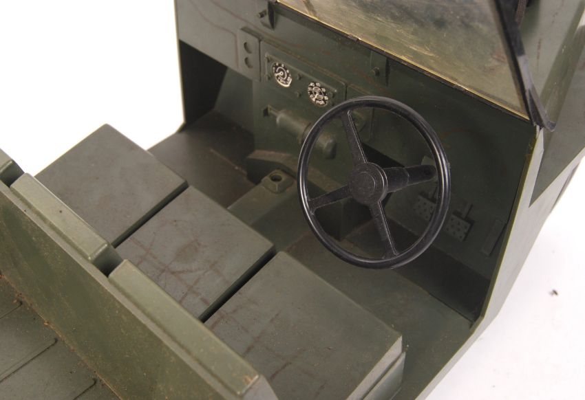 An original vintage Palitoy made Action Man ' Landrover ' military vehicle. Within the original box (some wear). With windscreen and spare wheel. Boxed.
