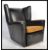 A vintage retro 20th Century wingback angular armchair, having a black vinyl upholstery, contrasting cushion raised on original castors