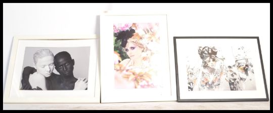 A group of three large framed photographic prints of ladies , two having glazed fronts. Highly detailed with god colours. Please see images. Measures: 58cm high x 49cm wide.