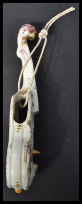 A 19th Century Italian ceramic pottery wall pocket modelled as a Cello, hand decorated with flowers and fauna, blue makers mark to the rear. Measures 19 cm long.