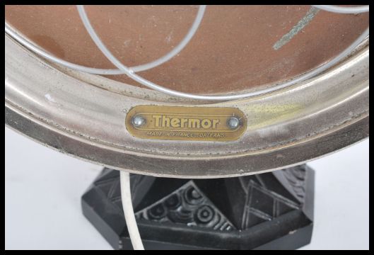 A vintage early 20th century Thermor French Orleans adjustable table desk lamp. The conical pendant shade raised on ebonised cast metal base.